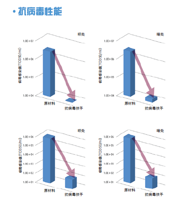 NAKA扶手抗病毒性:8小時(shí)能達(dá)到99%以上的抗病毒效果:原來(lái)的樹(shù)脂扶手與抗病毒配方的樹(shù)脂扶手在亮的地方與暗的地方分開(kāi)進(jìn)行了測(cè)試。隨著時(shí)間推移,抗病毒配方的樹(shù)脂扶手有了明顯的效果,8小時(shí)后觀測(cè)出了99%以上的抗病毒效果。根據(jù)安裝場(chǎng)所及使用條件,其結(jié)果是不同的,使用抗病毒扶手,降低了傳染病的風(fēng)險(xiǎn),可作為維持衛(wèi)生清潔環(huán)境的產(chǎn)品所使用。如圖三